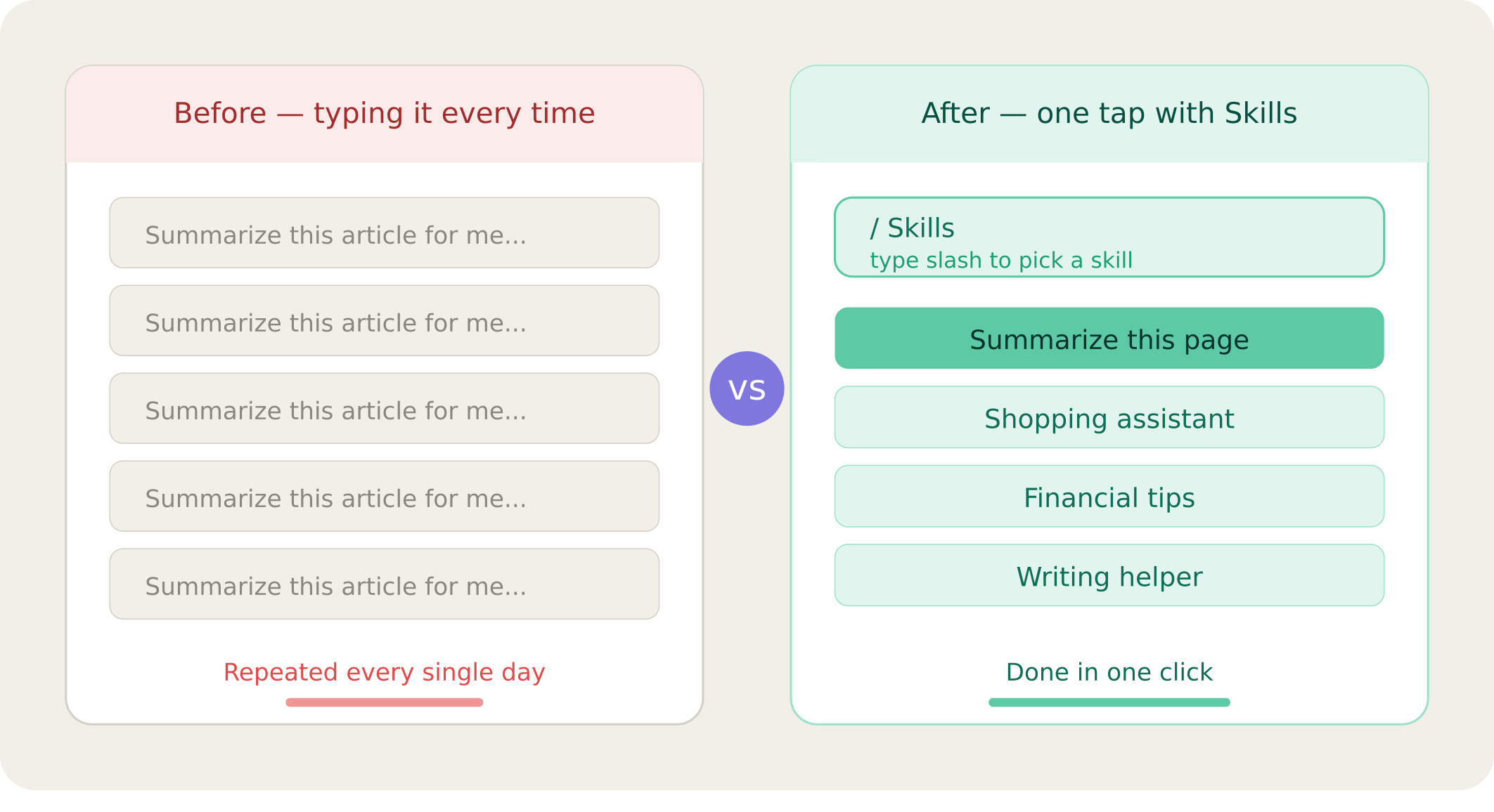 Think of Skills as saved shortcuts for your AI assistant. Every time you type a prompt  whether it’s to summarize a webpage, help you write something, or give you buying advice  you can now save that prompt as a reusable “Skill” with a single click.